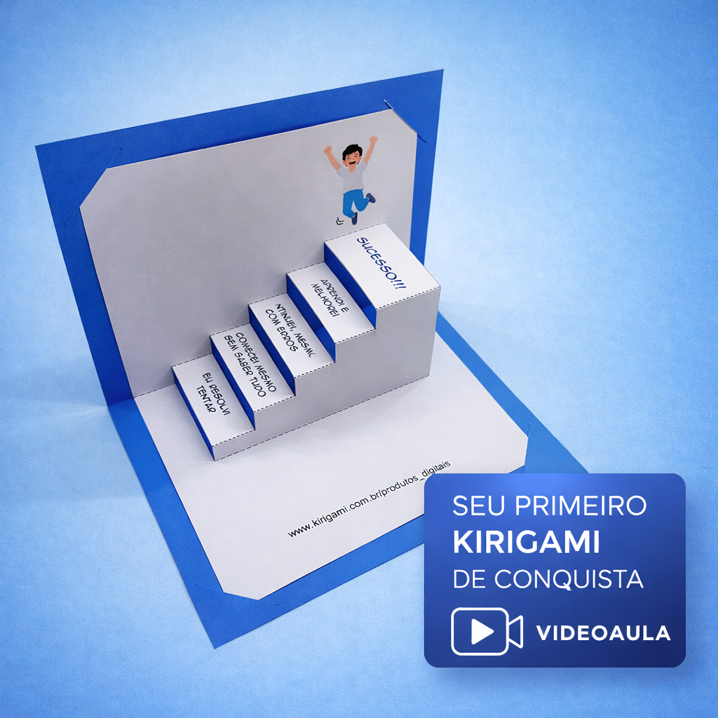 Neste projeto, você vai criar um cartão especial de 5 degraus, usando estilete, de forma guiada, segura e sem pressa.